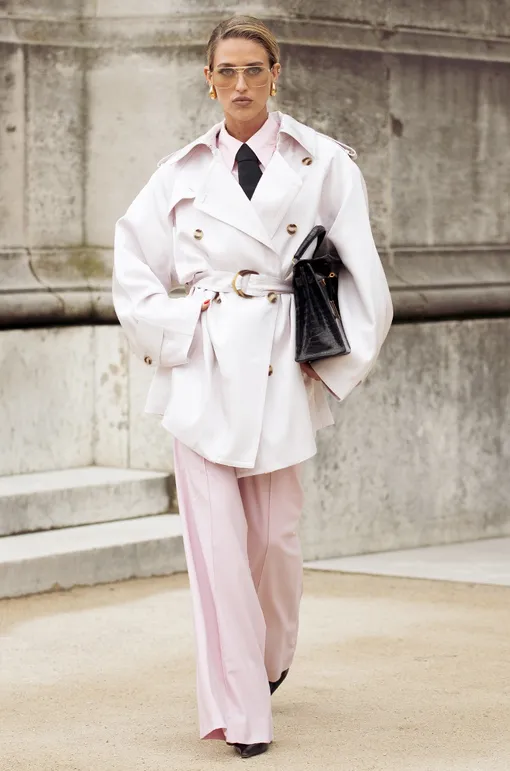 Об укороченных тренчах мы еще будем говорить не один раз: осенью-2025 они считаются невероятно модными. Поэтому да, разумно прямо сейчас решить, с чем носить трендовую обновку – и стритстайлеры предлагают миксовать ее с костюмными брюками со стрелками. Галстук, как ты видишь, тоже на месте.