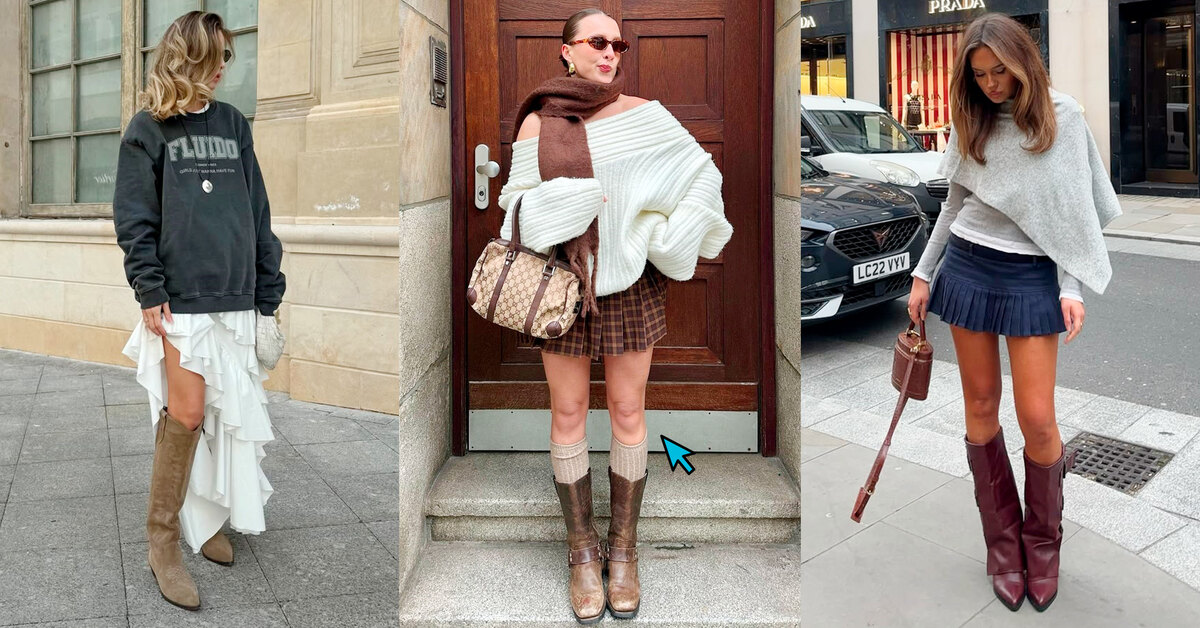 В этом сезоне байкерские сапоги носят с мини (и даже микро) юбками — например, моделями в складку или баллонами. В блогах модных инфлюенсеров была замечена рубрика «сапоги + гольфы» – проще говоря, фэшэниста чаще всего носят короткие юбки с байерскими сапогами и высокими гольфами. Бери на заметку готовый комплект.