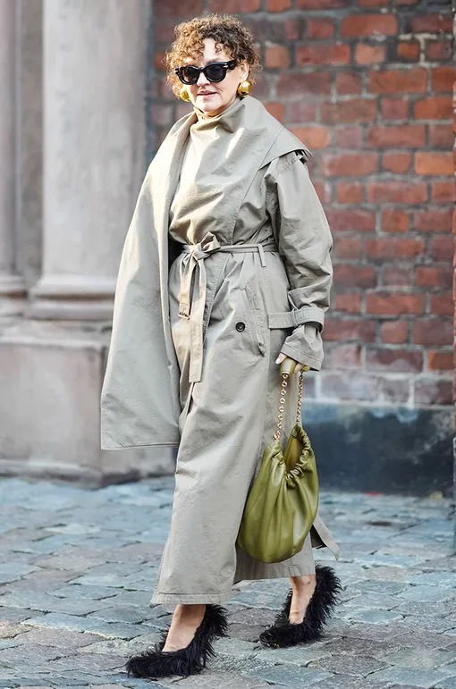 Чуть расширим этот пункт: в базу засчитываем и хаки, и пыльный темно-зеленый оттенки. Хаки – он же приглушенно-землистый – прекрасно мэтчится с другими натуральными цветами (от бургунди до шоколадного). Темно-зеленый чуть более капризный, с красным, например, может не сойтись. Зато как он украшает образы с джинсами и бежевым пальто!