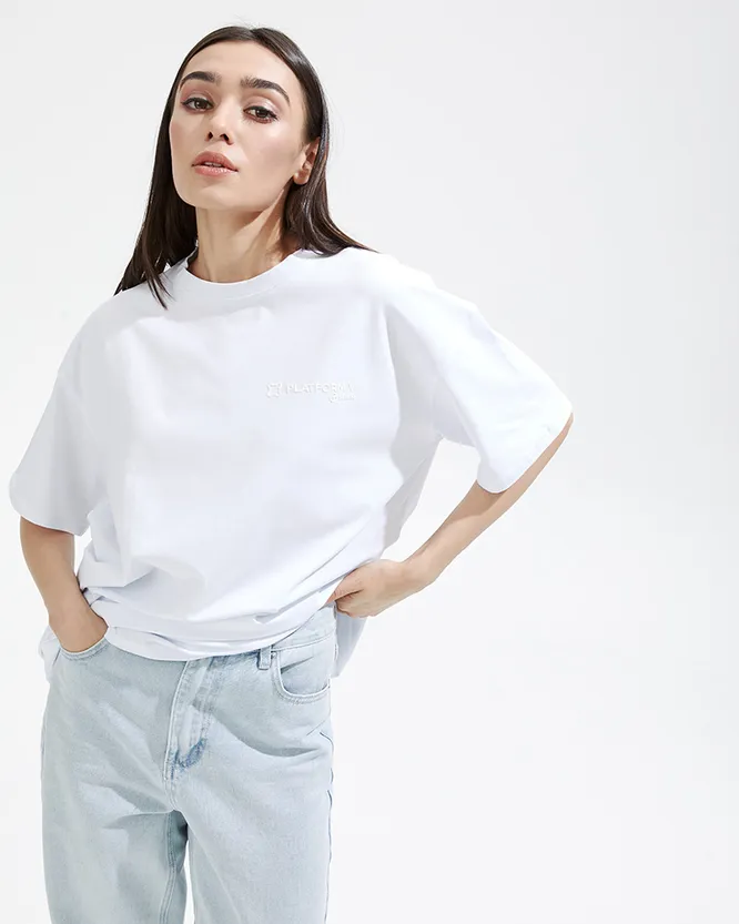Основа любого гардероба, которая может стать начальной точкой для строгого или расслабленного образа. Важно, чтобы футболка была из плотной ткани и не прилегала к телу. Добавь к ней свободные брюки — и ты готова к встрече с друзьями. Надень длинную юбку-карандаш — и офисный look тоже имеется.