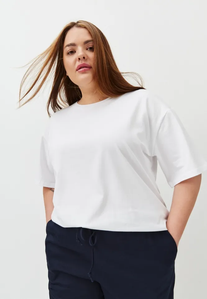 Минималистичный дизайн, струящиеся ткани и приятные к телу материалы подтверждают высказывание о том, что истинная красота кроется в мелочах. Начнем собирать наш плюс-сайз гардероб с однотонных образов: они визуально вытягивают фигуру, стройнят и даже добавляют несколько сантиметров к твоему росту – приятный бонус, который ты получаешь от правильного подбора фасона и силуэта.