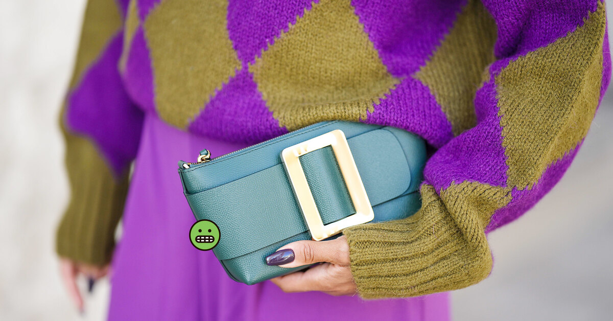 Если с кислотными и супернасыщенными оттенками тебе пока сложно расстаться, хоть ты и видишь их негативный эффект, предложим компромисс — добавить неон в качестве одной (!) яркой детали. Например, подвески на сумку. Так сепарация пройдет легче :)