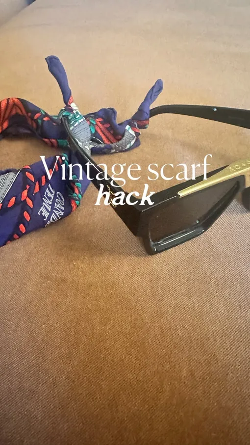Модный блогер Вирджиния Чамли нашла выход: используй вместо цепочки для очков шелковый платок. Это милый и небанальный способ сочетать шарф и солнцезащитные очки.