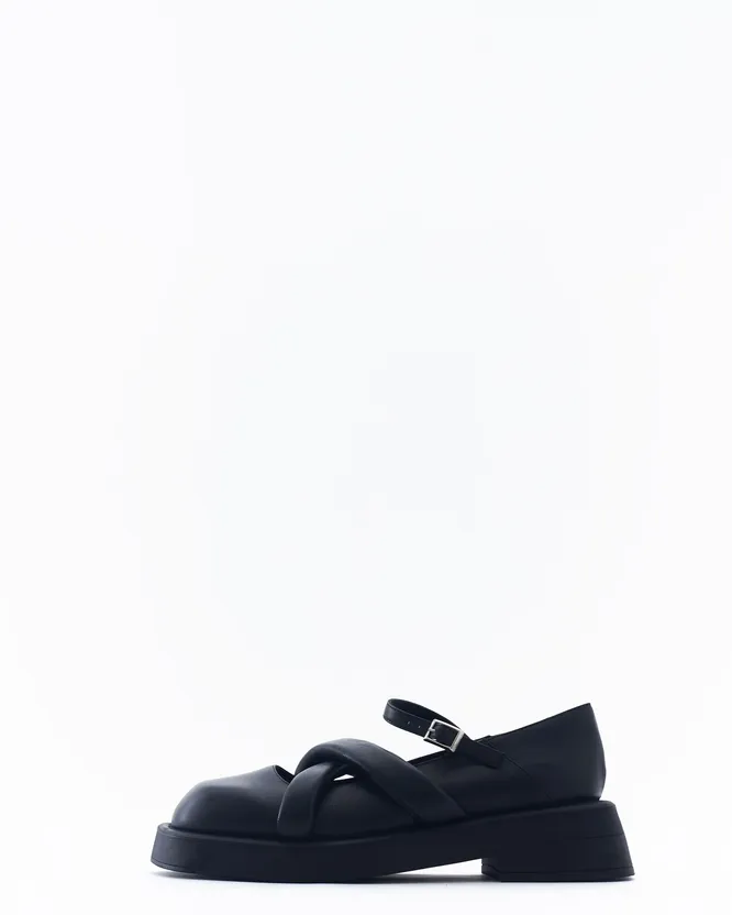 Еще одна французская классика – удобные и в хорошем смысле инфантильные мэри джейн. Определенно советуем тебе примерить такую пару, ранней осенью они почти незаменимы. Добавим темно-синие джинсы на высокой посадке, среднеширокий ремень с пряжкой и поло с длинным рукавом / пуловер. Очень просто, но гармонично.