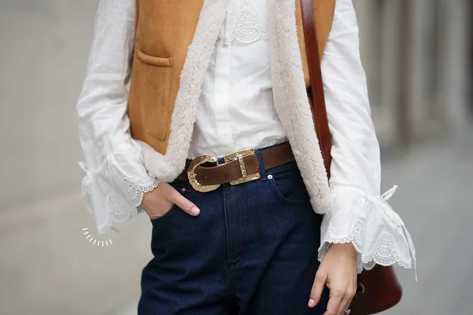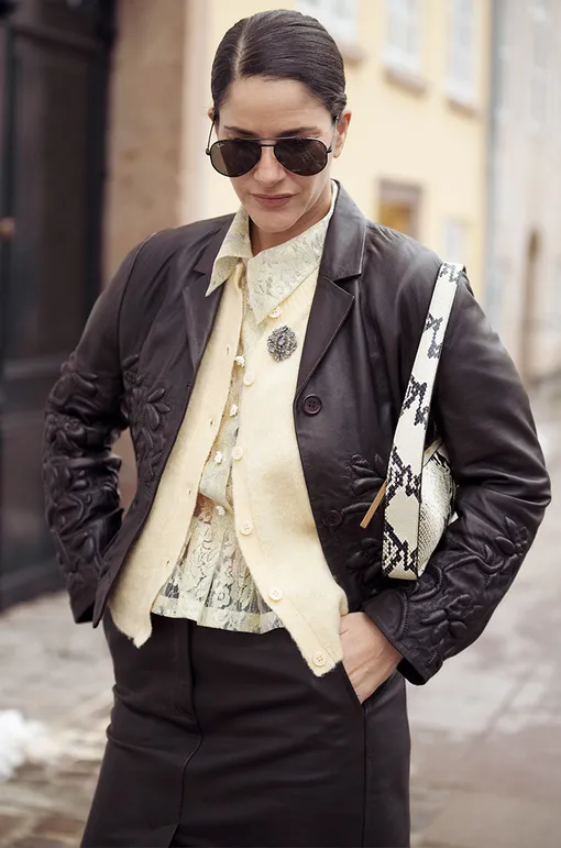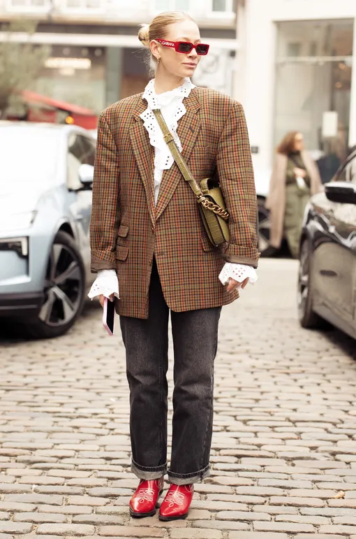 Воротник — еще одна деталь, которая может добавить образу богемности и экстравагантности. Ажурные, похожие на бабушкины салфетки, воротники, струящиеся чуть ли не до пояса — то, что молниенонсно преобразит твой лук. Чтобы не выглядеть так, будто выбежала из театральной костюмерной, «укрощай» блузку офисным пиджаком оверсайз и черными джинсами.