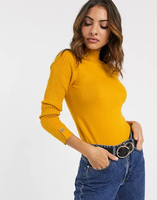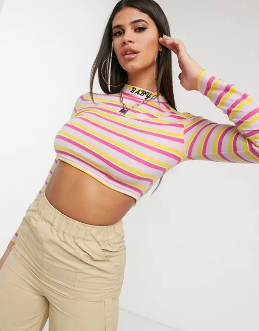 Для любительниц дерзкого молодежного стиля дизайнеры придумали укороченный вариант водолазки. Он похож на кроп-топ, но только с длинными рукавами и воротником. Лучшая пара к такому варианту — джинсы с высокой посадкой.