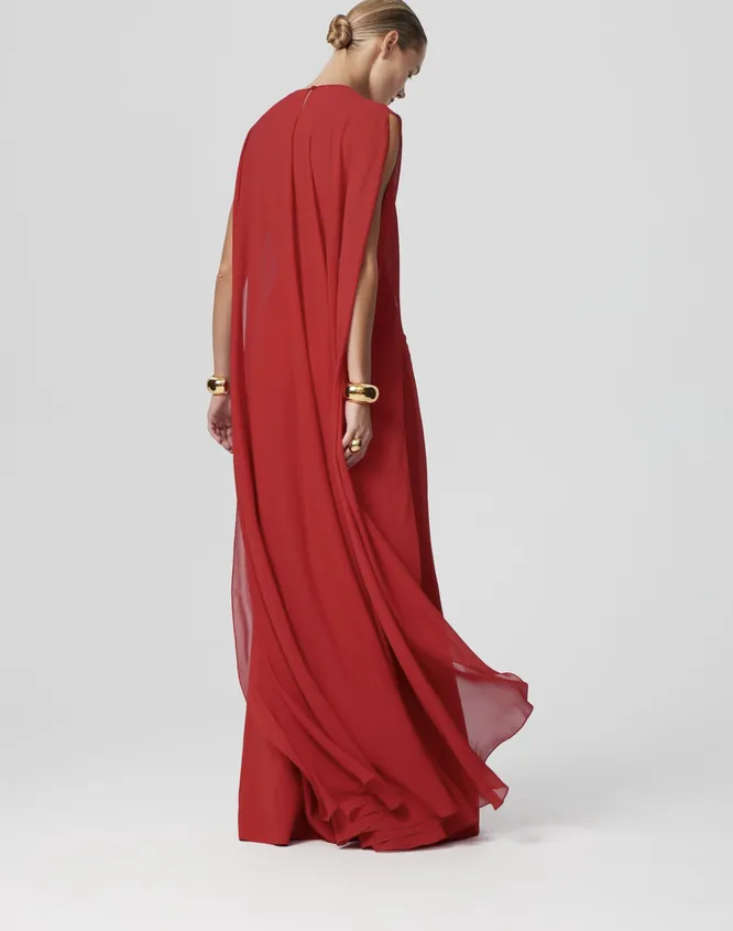 Самая дорогая находка из нашей подборки – кейп. Да, праздничные «плащи» обычно стоят немало, но в них есть смысл вложиться. Тем более, если ты в течение года часто ходишь на светские мероприятия и вечеринки: нарядный кейп с самой простой комбинацией – невероятия пара.
