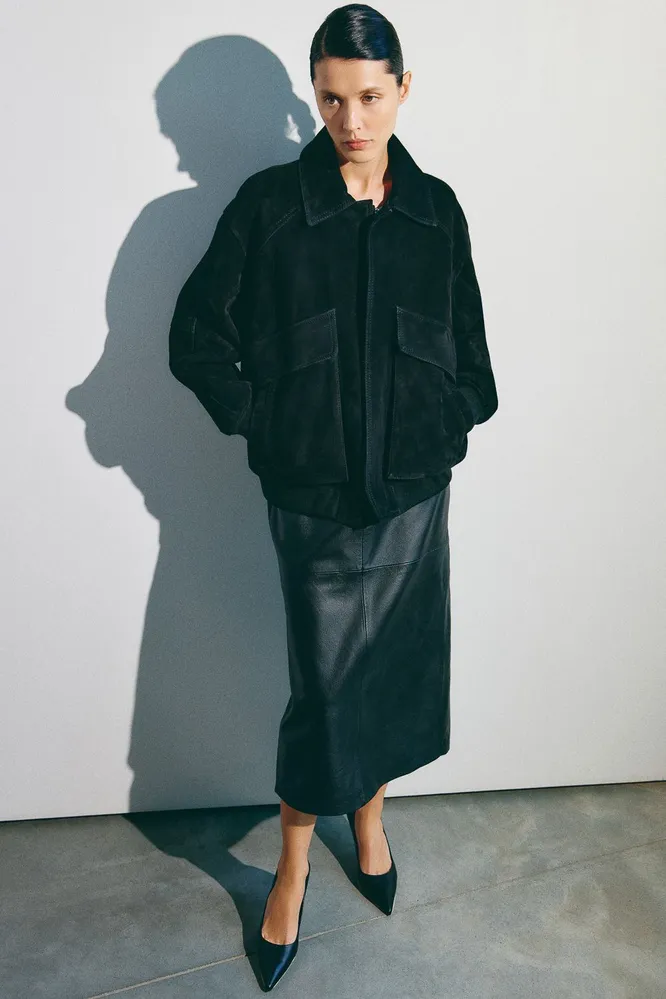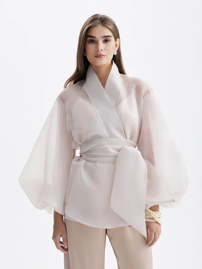Еще одно отличное комбо, на которое не нужно много тратить. Скорее всего, у тебя в гардеробе есть кожаная миди (брюки, кстати, тоже подойдут) – верно? Добавим полупрозрачную воздушную блузу. Рюши, воланы, крой под кимоно и широкие рукава приветствуются!