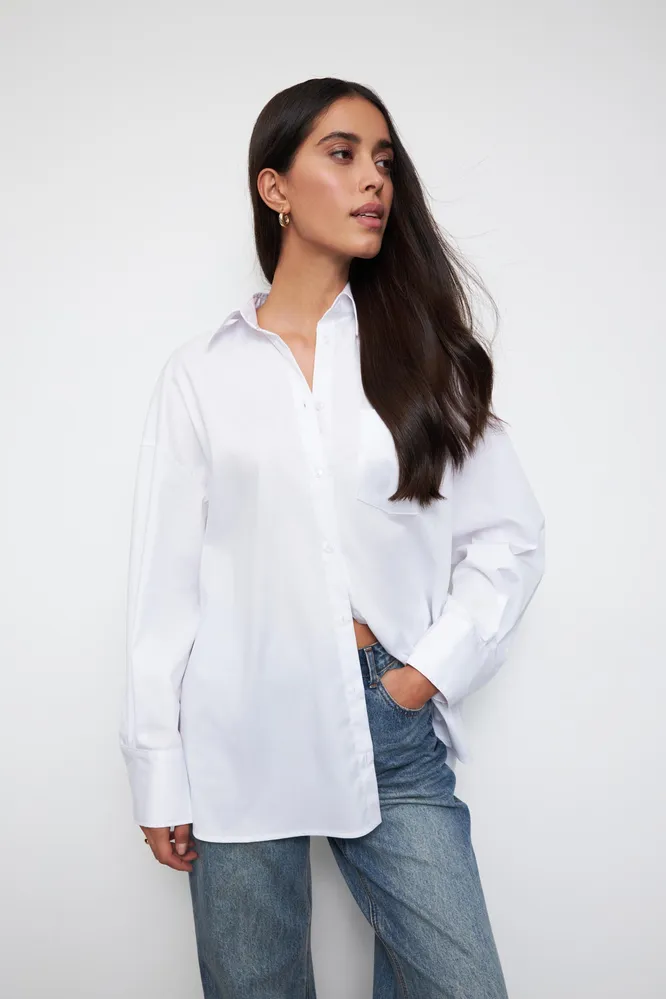 Тренд на серебряные джинсы, может, и прошел, но брюки с металлическим блеском все еще в топе продаж. Ищи необычные оттенки: «грязная» платина, розовый с перламутровым отливом. В пару к эффектному низу берем базовую рубашку или даже белую футболку – у тебя наверняка есть!
