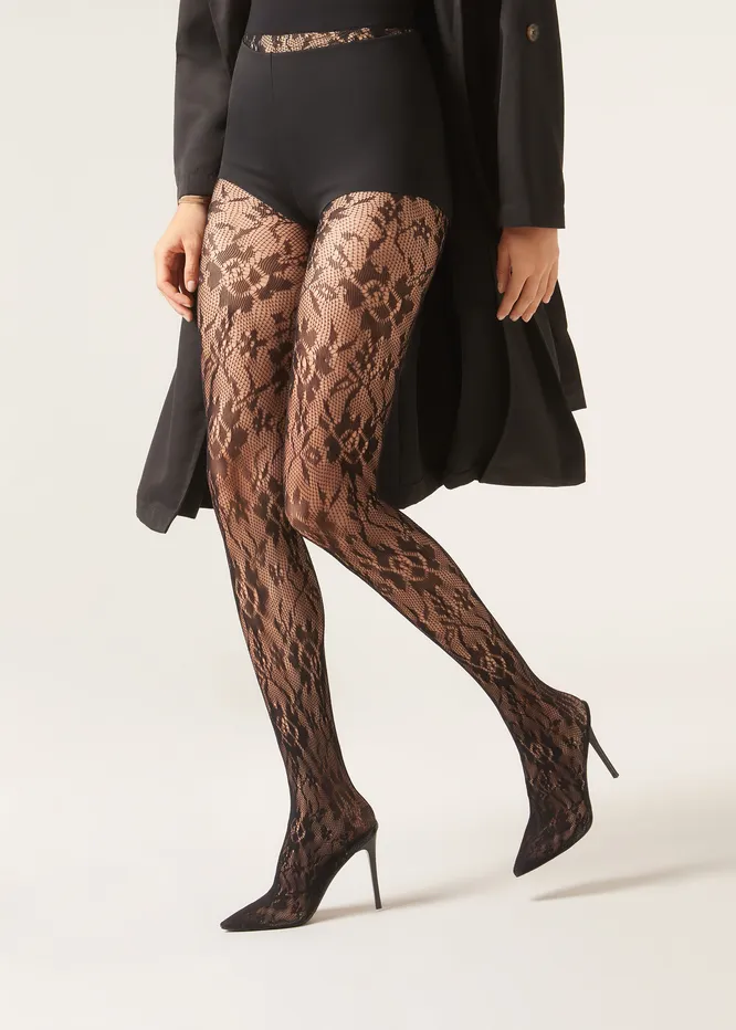Белая рубашка и ажурные колготки