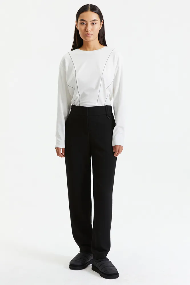 Совет более чем дельный: черное трикотажное платье, например, легко сочетать с почти любым жакетом или свитером, а полуклассические брюки на удачной посадке и вовсе станут спасительными – их можно носить и с дутиками, и с сапогами.