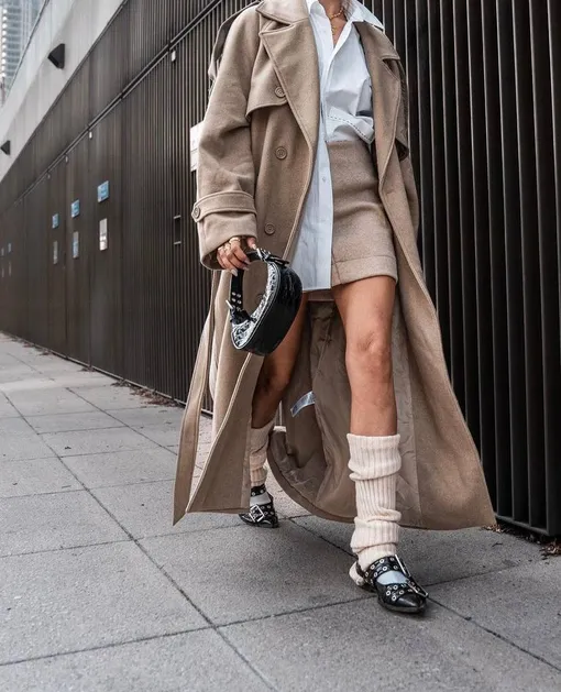 Комбинация рубашки и трикотажный джемпер сверху — отличный вариант на осень и зиму: так ты точно не замерзнешь. Многослойность — это всегда классное решение! Плюс, всегда можно накинуть на плечи тренч или пальто, а когда совсем похолодает — удлиненный пуховик.