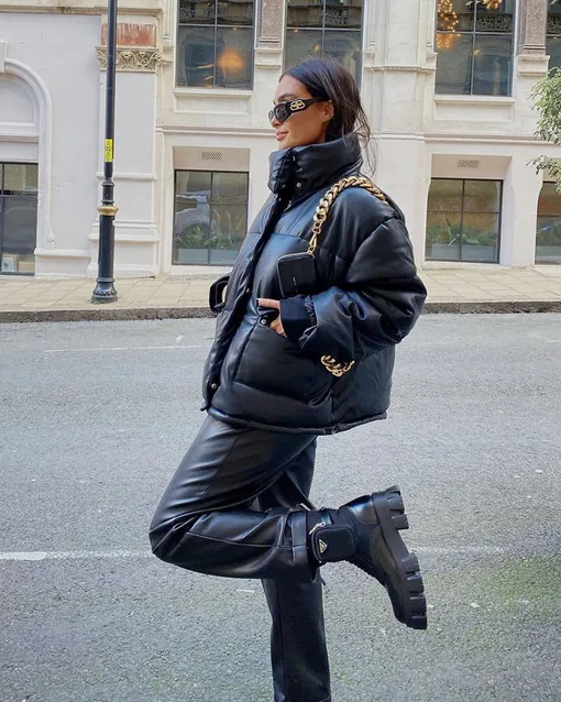 Поклонницам уютных образов советуем присмотреться к длинным дутым пуховикам — с ними зимний наряд смотрится еще более мягким и теплым. Чтобы не нарушать гармонию, откажись от кричащих деталей, сделав ставку на лаконичность. Монохром, плавные линии, округлые формы и отсутствие резких переходов — главные ориентиры при составлении лука. И пусть такая модная женская зимняя верхняя одежда в 2022 году не отличается практичностью, зато тебе точно будет тепло.