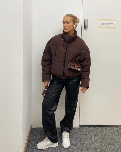 Укороченная дутая куртка — отличный вариант для тех, кто боится утонуть в объеме. Стильная верхняя одежда акцентирует талию, тем самым компенсируя массивность одежды и придавая силуэту выразительный вид. Выбирая, с чем носить куртку, остановись на моделях джинсов и брюк с высокой посадкой и длинными слегка расклешенными штанинами. Такая комбинация визуально удлинит ноги и добавит тебе роста.