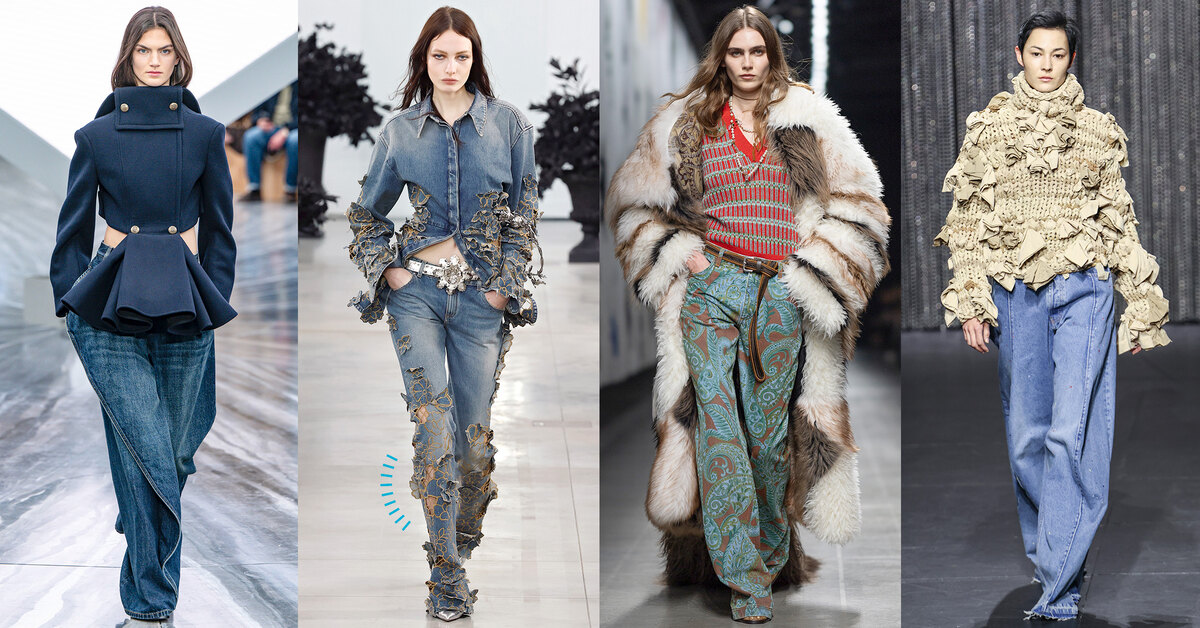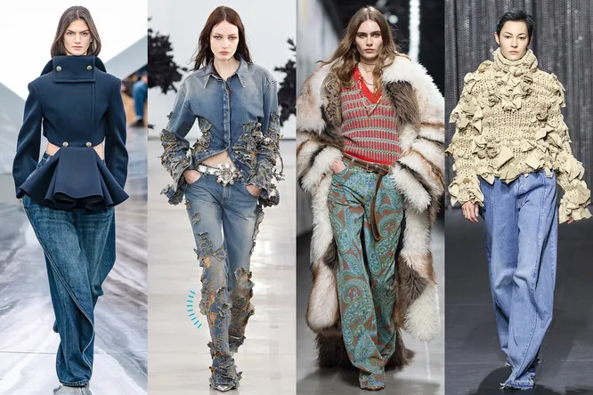 В подиумных луках дизайнеры делали упор на четкие силуэты, высокие каблуки и минималистичные детали. Результат: джинсы, которые по функциональности почти как классические брюки — только круче.