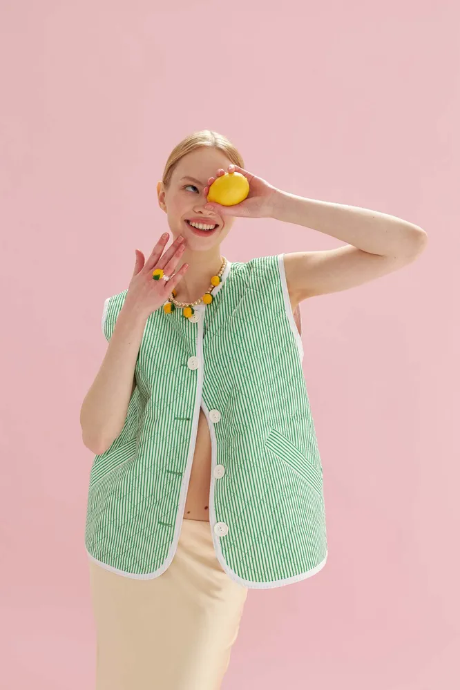 Несколько лет назад каждая первая фэшэниста при малейшем похолодании переодевалась в дутый стеганый жилет – получалась почти что броня от холода. В 2024-м такие массивные модели уже не в тренде, и актуальными считаются как раз тонкие, почти декоративные жилеты.