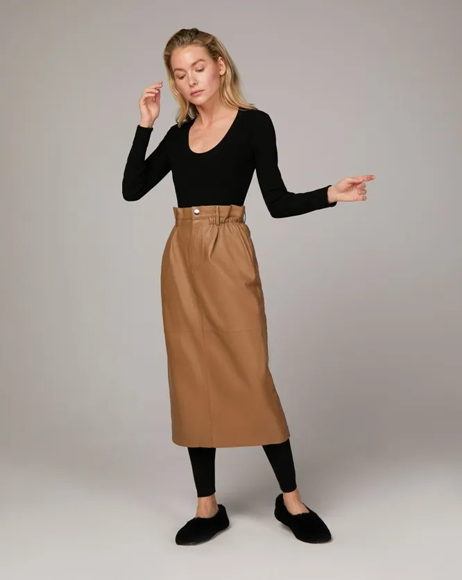 Кожаная юбка миди — 4 актуальных наряда на каждый день