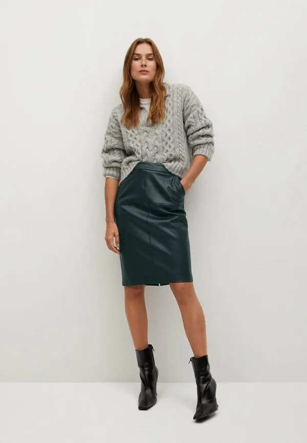 Зеленая кожаная юбка-карандаш, Mango
