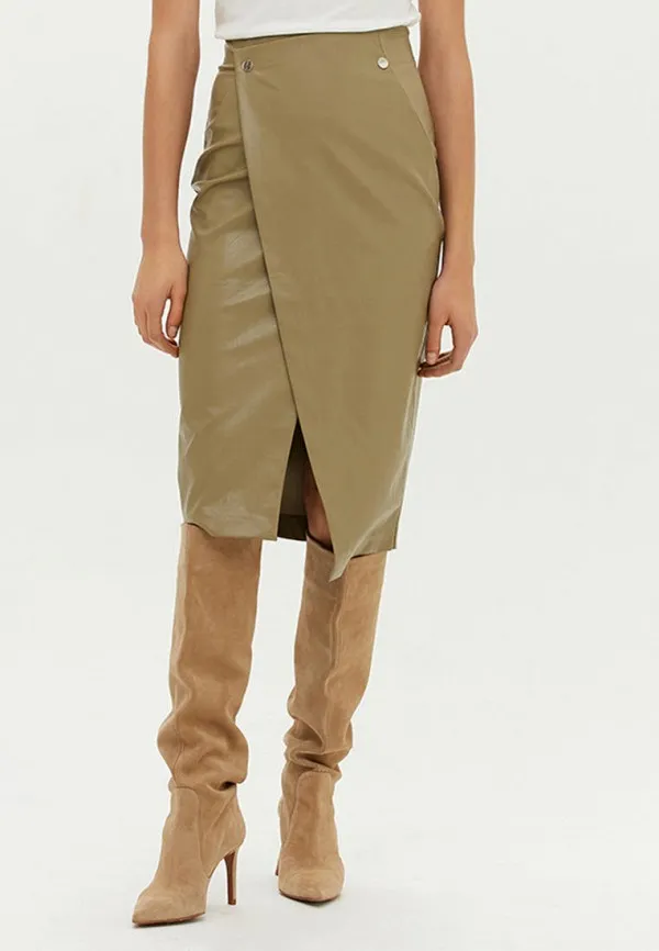 Кожаная юбка с запахом цвета хаки, Love Republic
