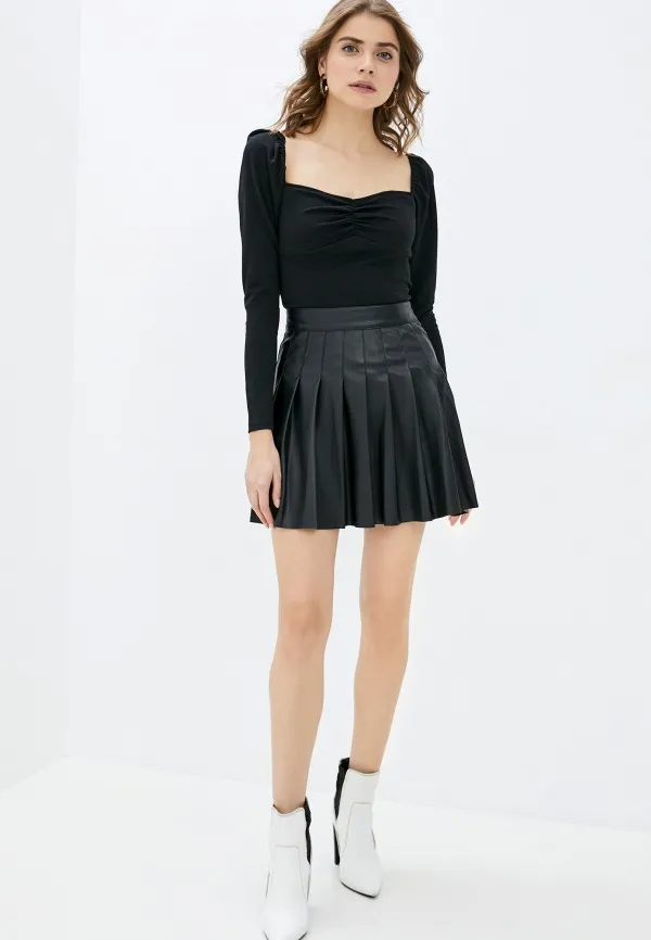 Черная кожаная юбка со складками, Befree