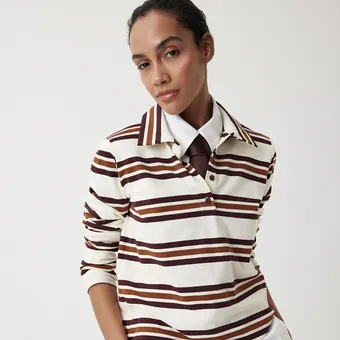А если боишься, что образ будет перегружен цветами, просто следи за тем, чтобы полоски на поло перекликались с другими оттенками в наряде.