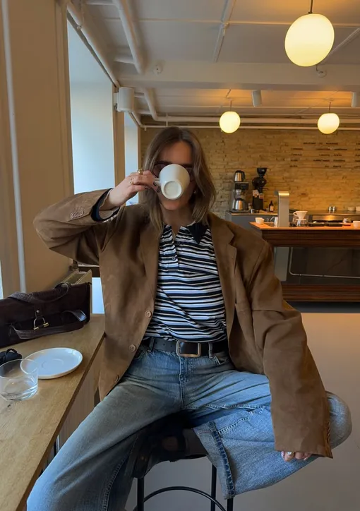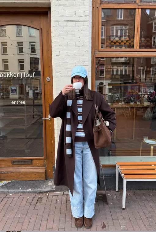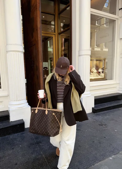 А вообще, все просто: белые брюки + шоколадный блейзер и аксессуары в тон + лонгслив в бело-коричневую полоску – уже удачное и крайне простое в стилизации комбо. По такой же схеме собираем образы с другими оттенками. На очереди у нас нежно-голубой, салатовый, розовый, сливочно-желтый, синий – вся весенняя палитра.