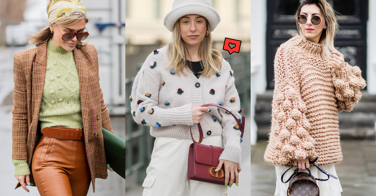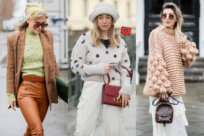 У свитеров с текстурной вязкой, будь то «косы» или прочие узоры, этой зимой появился конкурент. Модные соцсети и хронику стритстайла заполнил трикотаж с помпонами — небольшими вязаными шариками. Свитера с этой милой и забавной деталью так полюбились всем, потому что сразу добавляют образу нотку веселья и экстравагантности — а лишняя порция дофамина в хмурые и пасмурные дни явно не помешает.