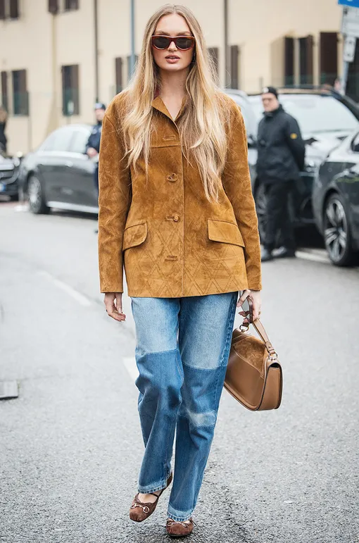 Да, синий и приглушенно-рыжый в целом здорово мэтчатся, но как подходят друг другу одежда карамельного цвета и деним! Модные инфлюэнсеры чуть ли не через одного выгуливают охристые пиджаки в комплекте с джинсами – и мы этот трюк повторим.