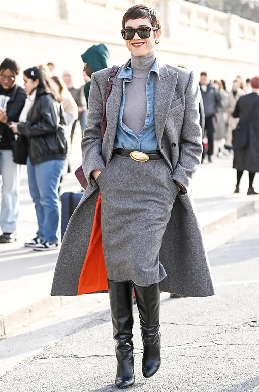 Как мы обожаем графит! Особенно, когда этот глубокий благородный цвет дополняется такой же благородной фактурой – например, шерстью. В комбинации с деталями пыльно-голубого и золотого оттенков графит смотрится еще более статусно. Бери на заметку.