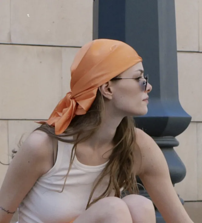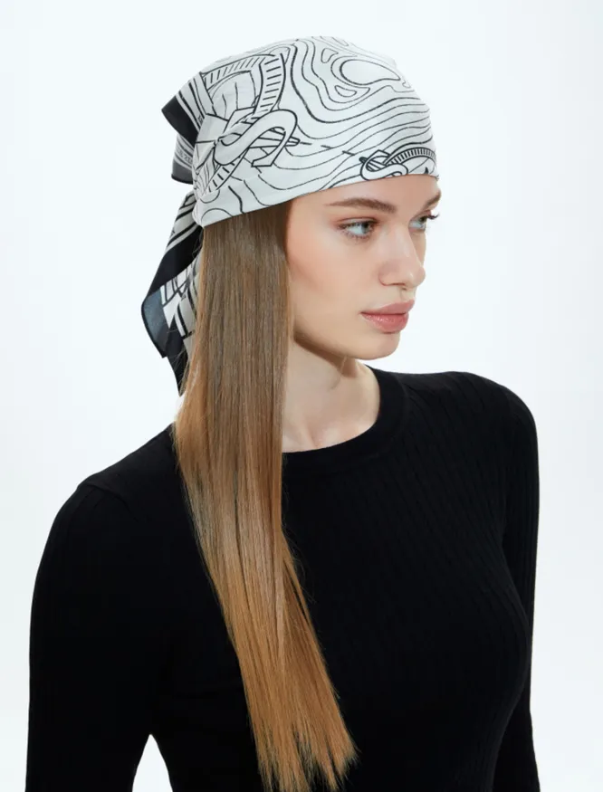 Надень платок не стандартным образом, а в виде банданы. Закрепи платок на затылке прямо поверх волос — вуаля, вид совсем другой.