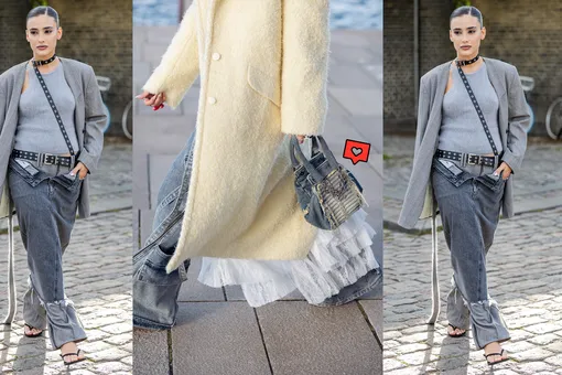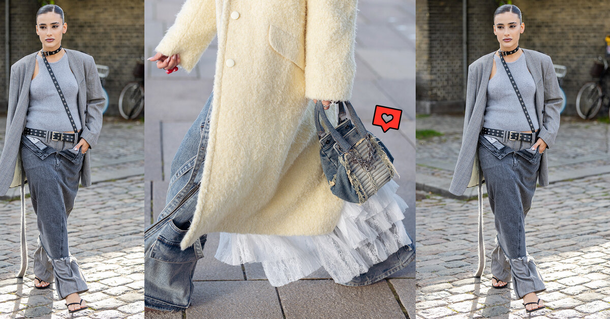 Кружево остается одним из самых трендовых материалов, который инлюенсеры носят в составе нарочито непринужденных луков, миксуя его со спортивными вещами или более грубыми фактурами, вроде денима. Серые джинсы тут подходят как нельзя лучше, обеспечивая явный, но не слишком резкий контраст. На выходе у тебя получается яркий и гармоничный образ.