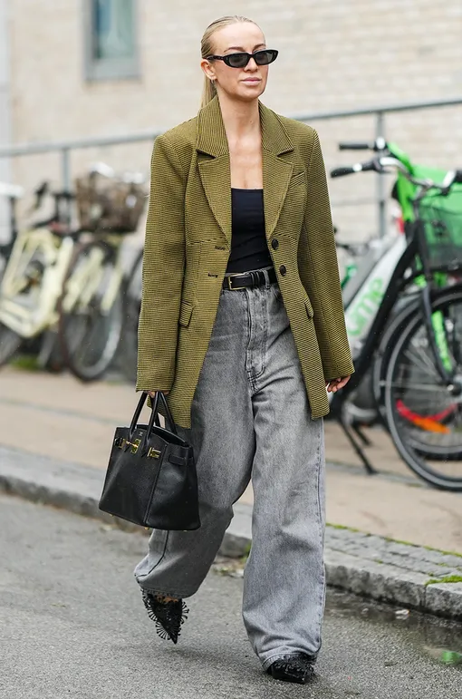 Вряд ли что-то сочетается с серым лучше, чем приглушенные, теплые земляные тона. Самый простой способ создать такой образ с серыми джинсами — это, безусловно, сочетать их с оливково-зеленым, кофейно-коричневым или темно-бежевым блейзером или тренчем. Все, что тебе еще понадобится — несколько нейтральных базовых вещей (например, черная рубашка или топ и черная кожаная сумка) — и у тебя получится трендовый образ для весны 2026 года.