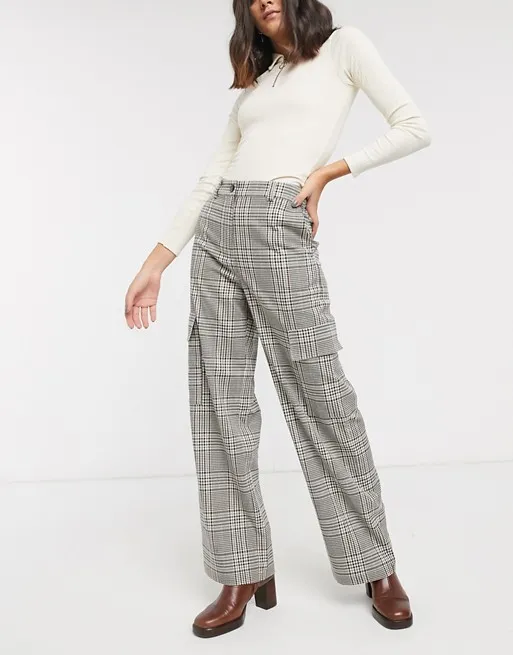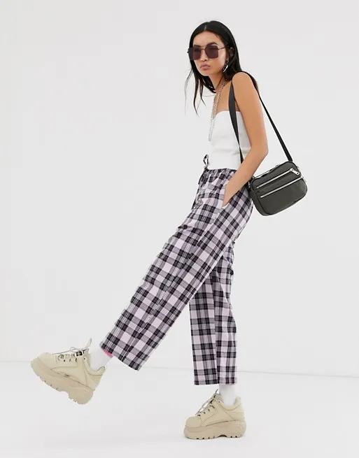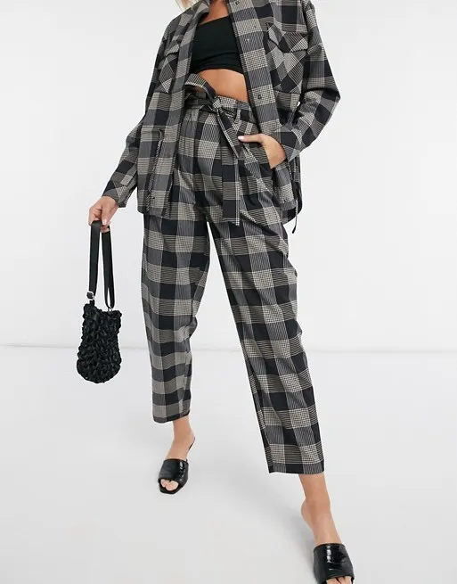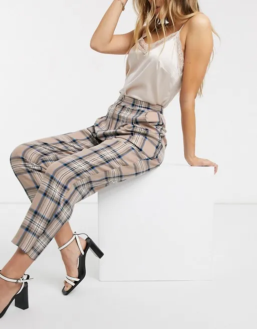 Штаны в клетку женские с высокой талией, ASOS DESIGN