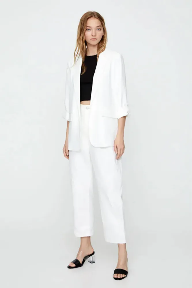 Полностью преобразить наряд тебе поможет хорошо скроенный пиджак. Обрати внимание на удлиненные модели свободной посадки — они сделает look более расслабленным и избавят его от излишней строгости. Если дресс-код не позволяет выходить за рамки черно-белой гаммы, поиграй на контрасте. Подбери к черному костюму белоснежный пиджак или наоборот — такая игра цветов сделает интереснее даже самый лаконичный образ.