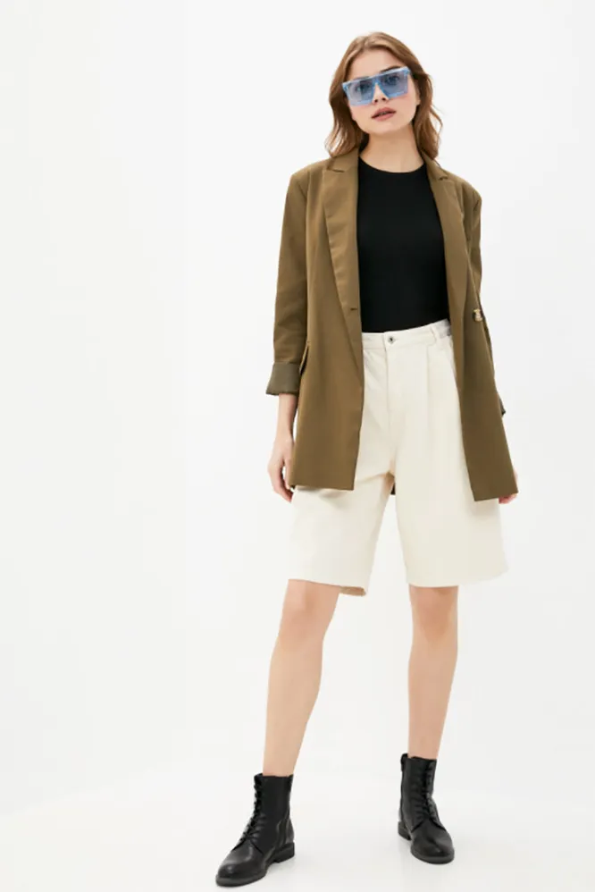 Главным спасением для тех, кому приходится пять дней в неделю томиться в душном офисе, являются шорты-бермуды. В них не так жарко, как в классических брюках, при этом они вполне уместно смотрятся в рамках делового образа. Обрати внимание на светлые кремовые или бежевые модели — они наиболее комфортны для лета. Главное, что стоит учесть при выборе шорт — материал, из которого они сшиты. Ткань должна быть достаточно плотная и хорошо держать форму.