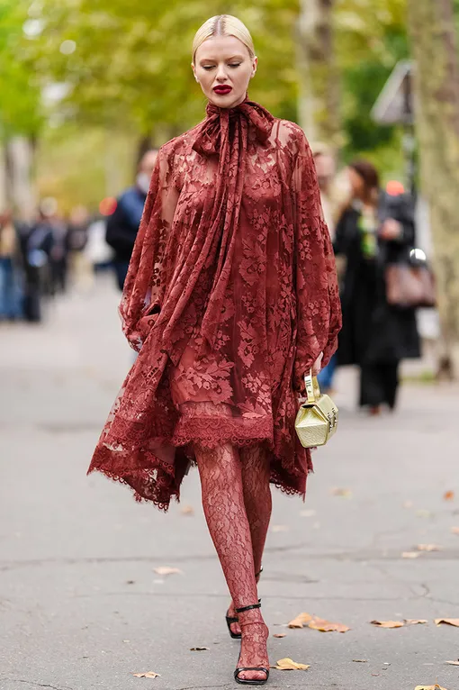 Тонкая грань между романтичным и похожим на кухонную занавеску «низом» в этом сезоне стерлась. Особенно в случае гипюровых юбок и платьев, которые не делают ничего хорошего ни для фигуры, ни для актуальности. Хочешь лёгкости? Ищи органзу, полупрозрачный хлопок или шифон — и будет тебе элегантность без налёта театральности.