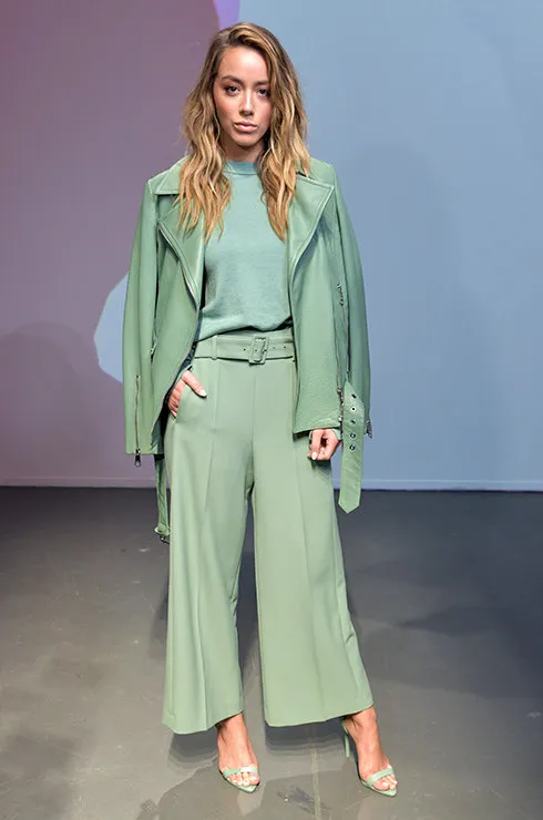 Тонкий цветной трикотаж из хлопка отлично смотрится в монохромных комплектах. Для такого образа ваш джемпер должен быть полностью заправлен в юбку или брюки. Чтобы получить правильный силуэт, не стоит выбирать слишком облегающие модели. Особенно если мы говорим о трикотаже гладкой вязки. Лучше, чтобы вещь была свободной и мягко ложилась складками поверх пояса.