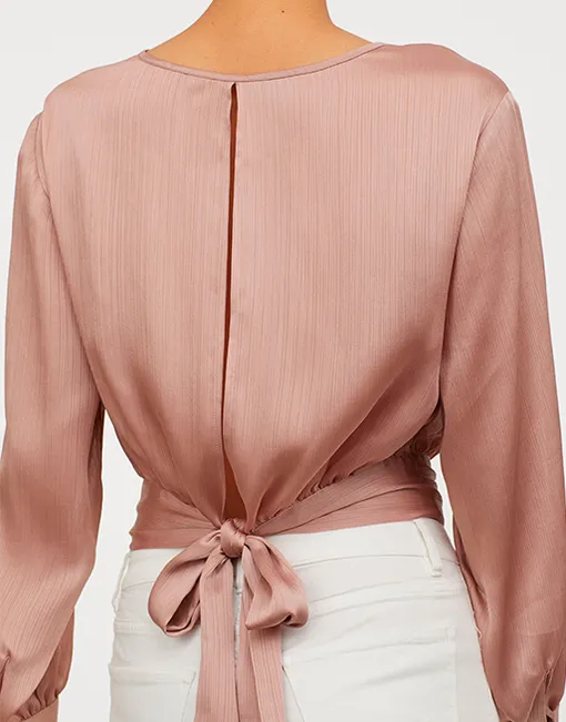 Романтичным и сдержанным натурам рекомендуем выбрать элегантную струящуюся блузку пудрового оттенка. Эта модель хороша скромным, но интригующим вырезом на спине. Добавь брюки из легкой ткани бежевого цвета и босоножки металлического оттенка. Этот топ легко впишется в повседневный гардероб — его можно надеть на ужин в ресторан или на романтическую прогулку.