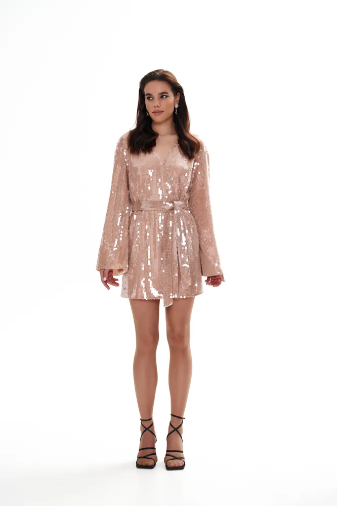 Собираешься встретить 2024-й год в семейном кругу? Можно выбрать комфортный наряд, но с интересной фактурой, чтобы в нем не потерялось праздничное настроение. Отличный вариант – платья-кимоно в пайетках, брючные костюмы из атласной ткани в бельевом стиле.
