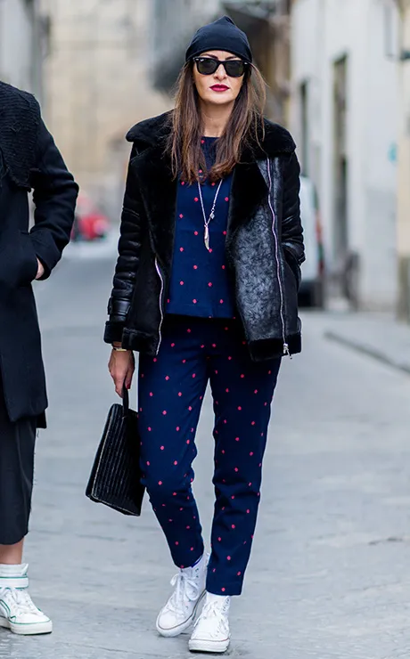 Сочетать спортивные брюки с классическим пальто прямого кроя или даже топом в пайетках (и такое может быть) осмелятся только самые искушенные модницы, которых уже ничем не удивишь. Решишься?