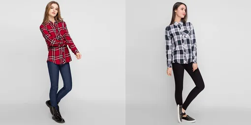 Крупные квадраты занимают почетное место на рубашках свободного кроя. Делаем ставки на привычные сочетания и принимаем правила игры на контрастах — черный и белый цвета в ней никогда не проигрывают. Носим, небрежно заправляя в темный деним, строгие чиносы или брюки-бананы. Лаконичным завершением такой клетчатой истории станут стильные лоферы или массивные ботинки в стиле милитари.