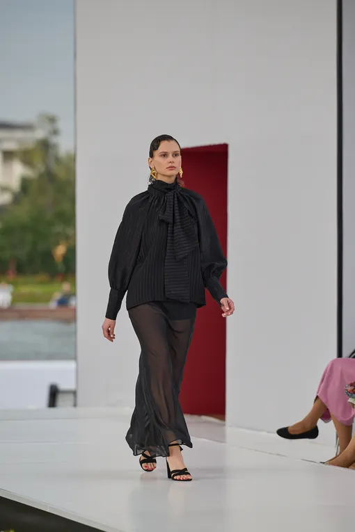 Краснодарский бренд Les Noms сделал ставку на ремесло и арт-подход. Коллекция «Моя земля» превратилась в философское высказывание о связи человека с местом, где он родился. Натуральные ткани и приглушенные тона создавали ощущение прогулки по южному городу на закате. Les Noms показали, что медленная мода на юге России – это не просто тренд, а личная позиция и путь.