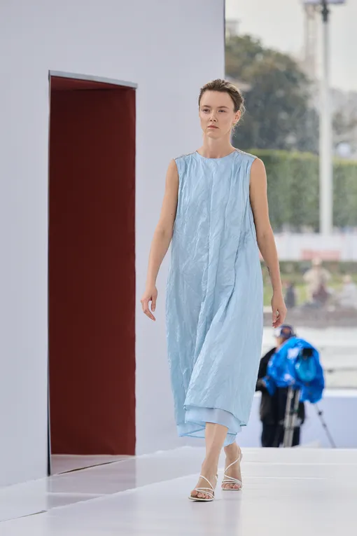 Псковский бренд Alpecora показал коллекцию, где минимализм встречается с художественным поиском. Вдохновением стали работы художницы Жанны Опгенхаффен: на подиуме это выразилось в нежных пастельных оттенках и чистой архитектуре форм. Платья напоминают объект современного искусства, создавая почти медитативное настроение.