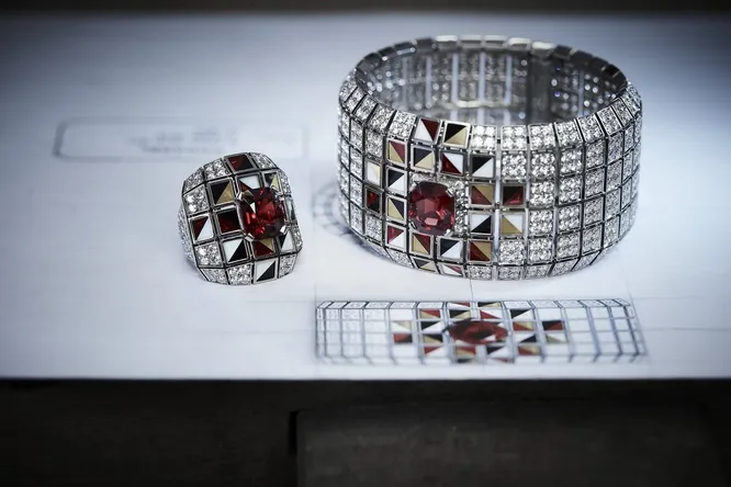 Импресарио «Русских балетов», вызвавших в Европе интерес к русской культуре, Сергей Дягилев был близким другом Коко Шанель. Его именем назван барочный сет Sergueï. Кольцо и браслет напоминают о родине Дягилева — Перми, ярких уральских самоцветах и замысловатом орнаменте народных промыслов. Букет цветов на браслете составлен из танзанита (34 карата), рубинов, малахита, цаворитов, аквамаринов, рубеллитов и жемчуга.