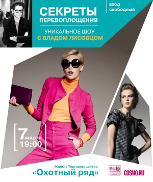 7 марта в 19.00 приходи в Торговый Центр «Охотный Ряд» в Москве на уникальном шоу Влада Лисовца «Секреты Перевоплощения».