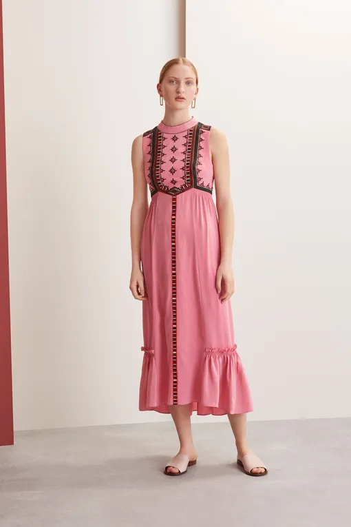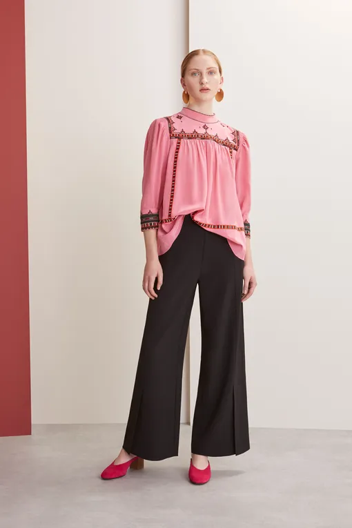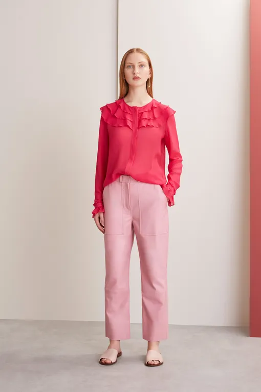 Впрочем, осмыслено сочетание весьма умело и не отдает ни конфетностью, ни агрессивным феминизмом: вещи из пре-коллекции можно надевать прямо сейчас, даже не разбивая комплекты из лукбука какими-либо другими цветами, и прямо так идти что в офис, что на свидание. Дизайнеры Whistles воистину не знают ни страха, ни упрека.