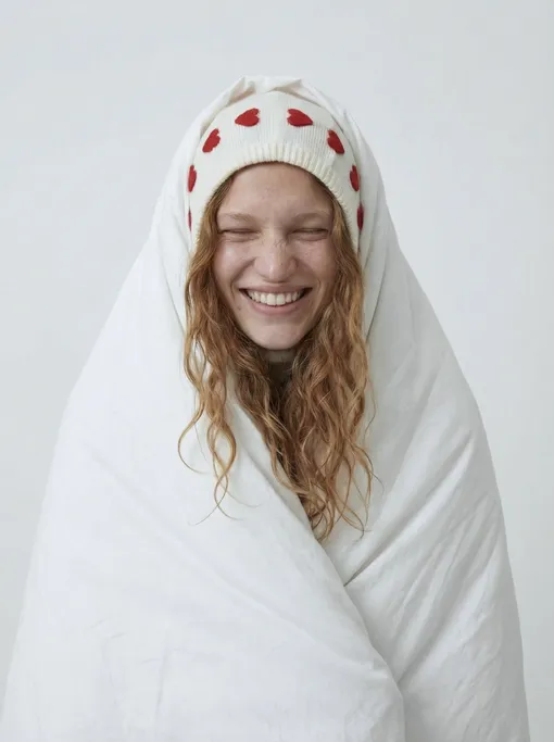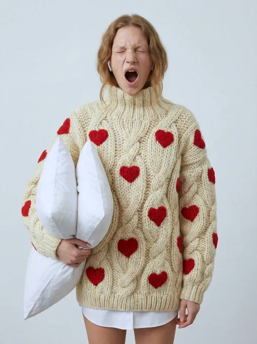 Главный референс капсулы — сердца на холсте «Hearts» Энди Уорхола. Они могут выглядеть просто, но это радикальное упрощение формы более чем эффектно. «Мы перенесли этот прием на трикотаж и "размножили" сердечки на свитерах "Лук", нашем базовом свитере, варежках и балаклаве», – делится команда. А мы не можем определиться, что хотим больше: розовый или молочный свитер в сердечках?