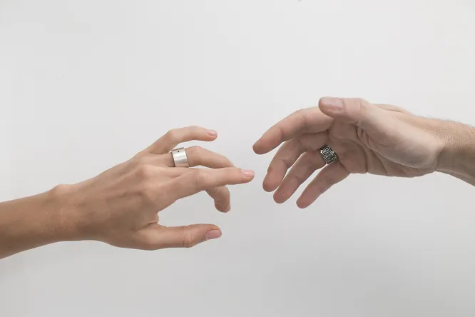 Кольца Navoti Ring c изображением лабиринта внутри и двумя ограненными камнями (черная шпинель и белый кварц, 1,5 мм) снаружи, стерлинговое серебро 925 пробы — 7000 рублей; Yakatama Ring с изображением лабиринта снаружи, стерлинговое серебро 925 пробы — 5700 рублей; Navoti Midi Ring, стерлинговое серебро 925 пробы, ограненный камень (черная шпинель, 1,5 мм) — 2200 рублей.