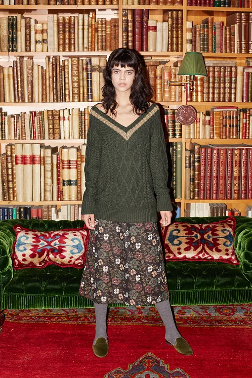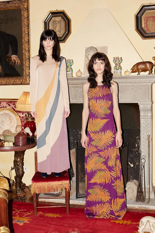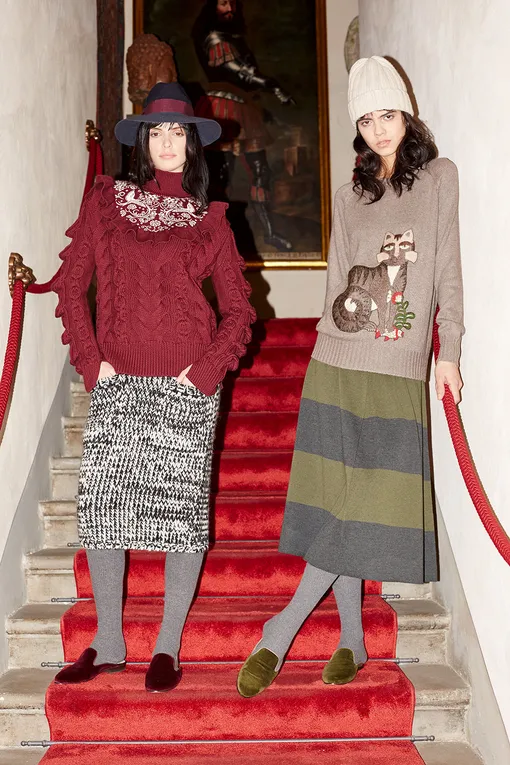 Средняя стоимость моделей из новой коллекции — от 11000 рублей за шапку до 103000 рублей за платье с узором «перья» из кашемира.