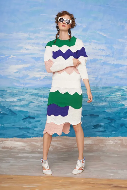 Источником вдохновения для коллекции Resort, как водится, стало путешествие: недавно Чисато съездила в Новую Зеландию. Отсюда узоры в в форме бараньих завитков, тарзанок, канатных трамваев и прочих достопримечательностей этого удаленного уголка.
